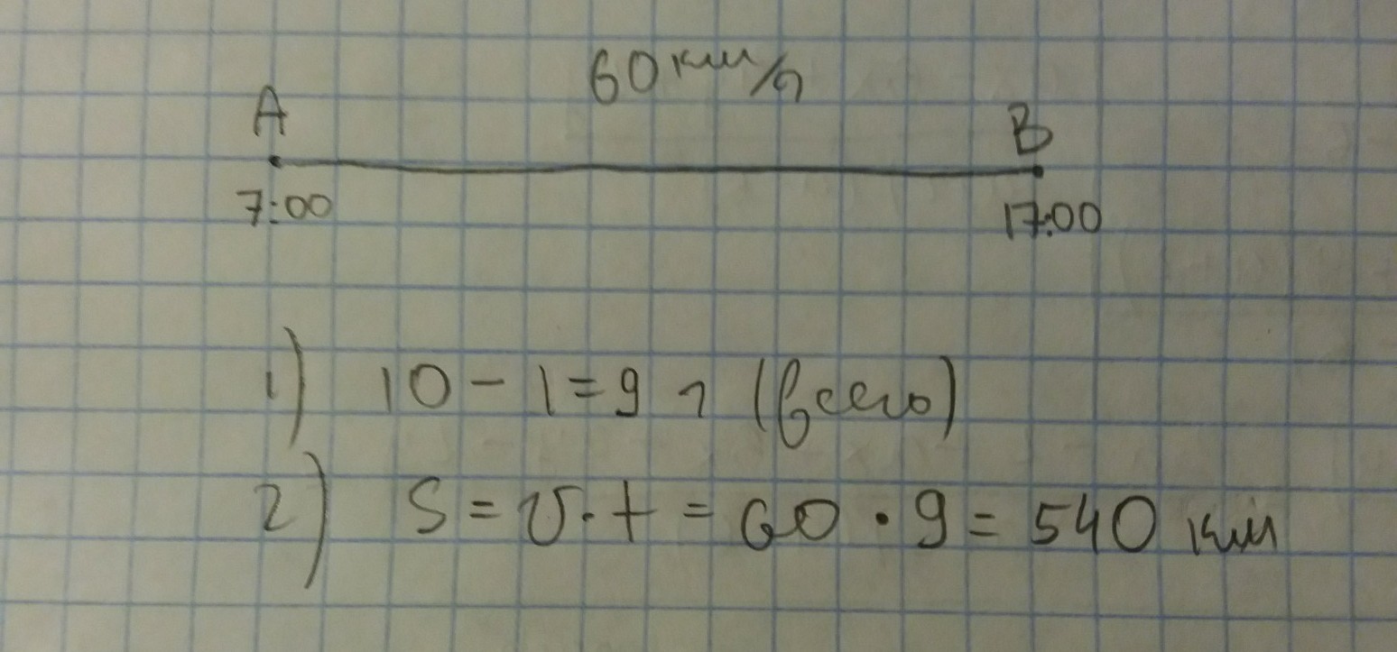 Междугородний автобус выехал в 7 ч утра и прибыл в место назначения в 17:00 Каково расстояние между городами если автобус двигался со скоростью 60 км ч На остановке вызов врача на один час
