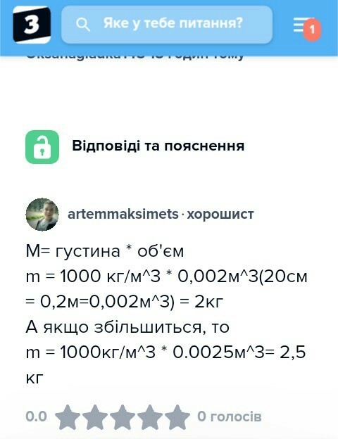 1. Японський селекціонер Томоюки Воно вивів сорт кавунів, які мають кубічну форму. Він запевняє, що не користувався при цьому ніякими механічними пристосуваннями або хімічними препаратами. Новий сорт кавунів дуже зручний для зберігання і транспортування. Оцініть масу такого кавуна, якщо довжина його сторони дорівнює 20 см, а густина кавуна близька до густини води і дорівнює 1000 кг/м3. Якою б була маса кавуна, якщо б він підріс ще на 5 см? 2. Якщо в блюдце налити окріп, а потім поставити на нього вверх дном склянку, то через деякий час вода із блюдця підніметься в склянку. Поясніть це явище. 3. Яку механічну роботу потрібно виконати піднімаючи із дна озера до поверхні пристрій масою 100 кг та об’ємом 0,02 м3? Глибина озера 40 м, а густина води 1000 кг/м3. 4. Готуючи напій деяку кількість розчинної кави залили водою, температура якої дорівнювала 100°С і кинули кілька шматочків льоду, температура якого становила 0°С. Коли весь лід розтанув, температура кави виявилась рівною 50°С. На скільки відсотків зменшилася концентрація кави у воді після танення льоду? Теплообмін кави і навколишнього середовища не враховуйте. Питомі теплоємності кави і води вважайте рівними 4200 Дж/(кг∙°С). Питома теплота плавлення льоду 330 кДж/кг. 5. Брусок рівномірно тягнуть вздовж горизонтальної поверхні за допомогою динамометра. Якими будуть покази динамометра, якщо на брусок покласти додатковий тягарець масою 200 г і рівномірно тягнути брусок із тягарцем за допомогою того ж динамометра?