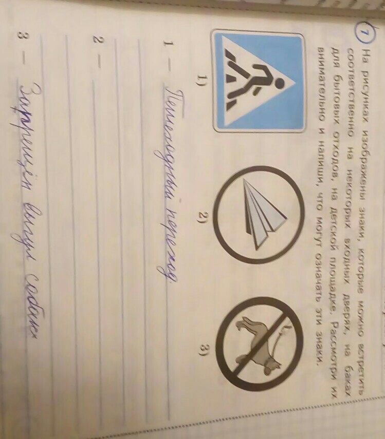 ПОМОГИТЕ! На рисунках изображены знаки, которые можно встретить соответственно на некоторых входных дверях, на баках для бытовых отходов, на детской площядке. Рассмотри их внимательно и напиши, что могут означать эти знаки.