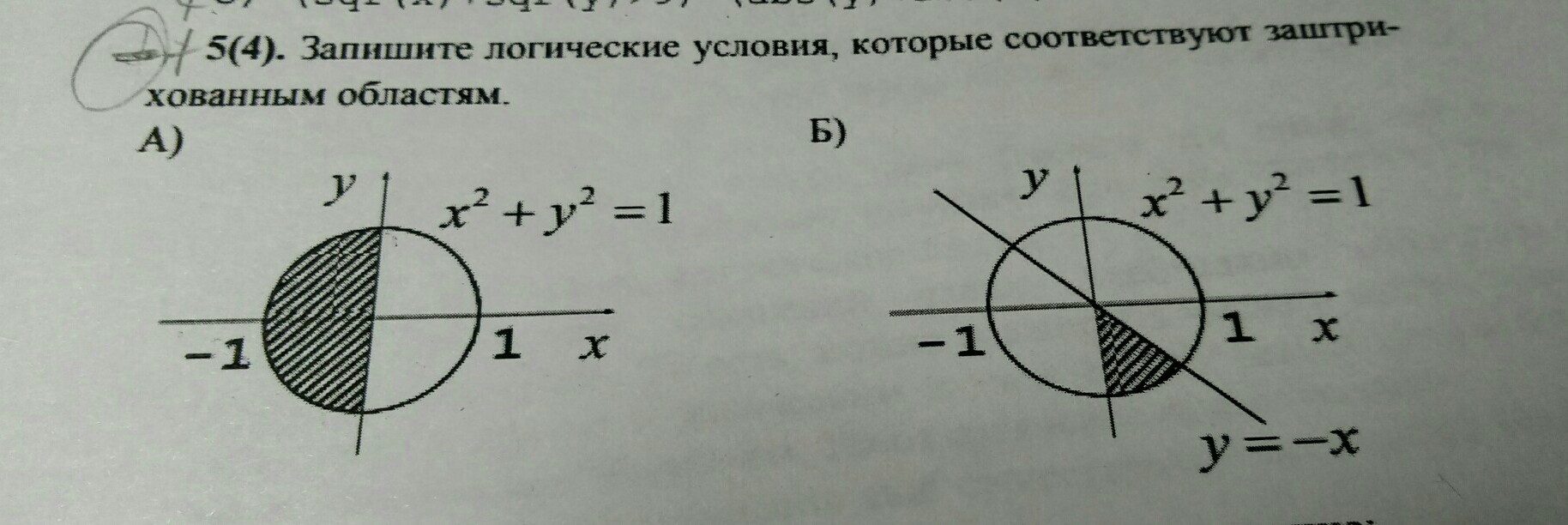 А) (х*х+у*у=1) & (х≤0) & (-1≤у≤1)
