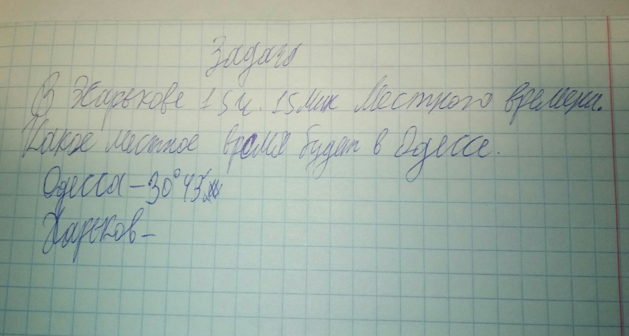 Одесса - 30° 44’ восточной долготы , время 15 ч. 15 мин.