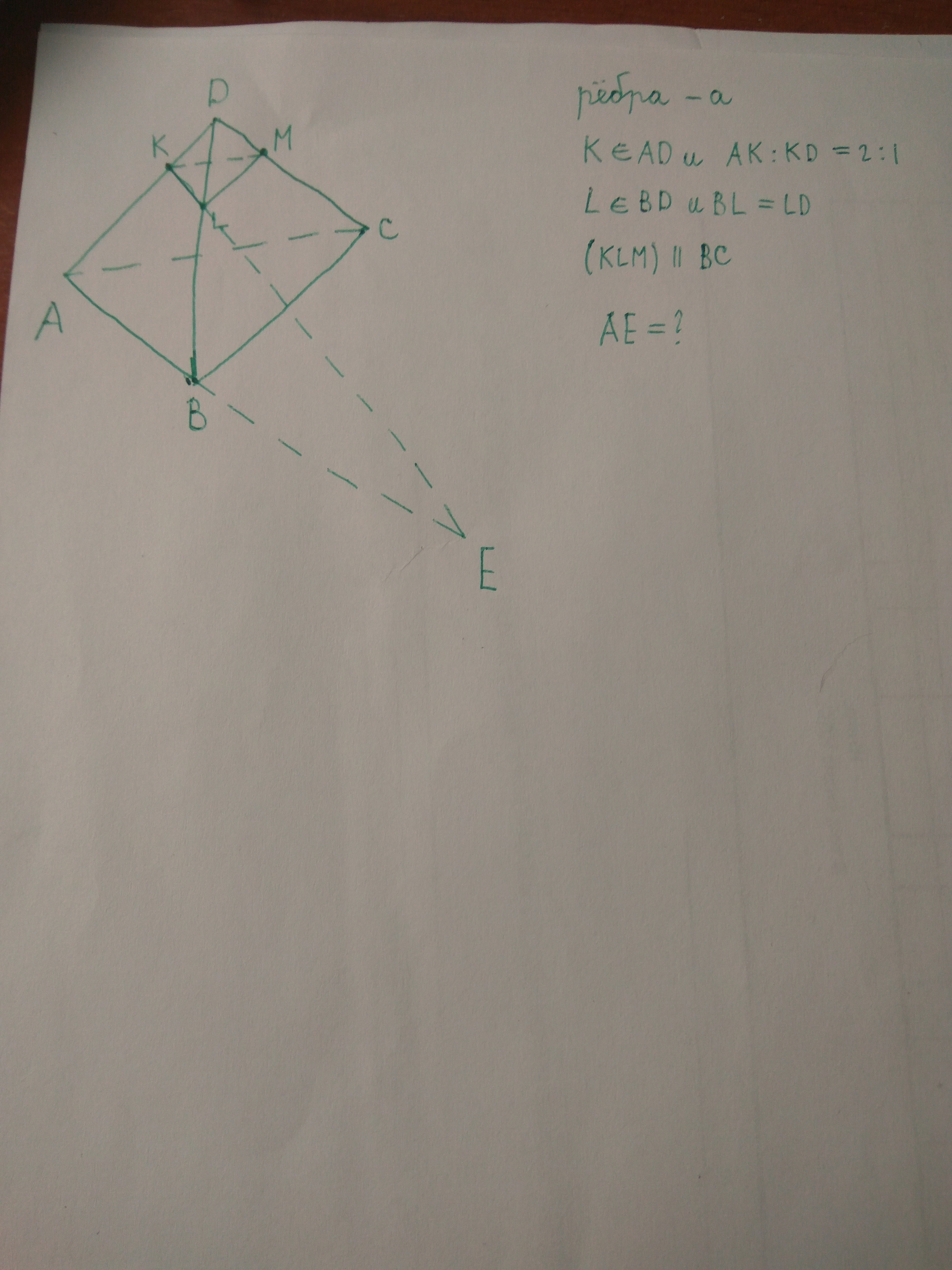 ΔSKL ~ ΔAKE, поскольку угол К общий, а углы при параллельных прямых SL и AE равны