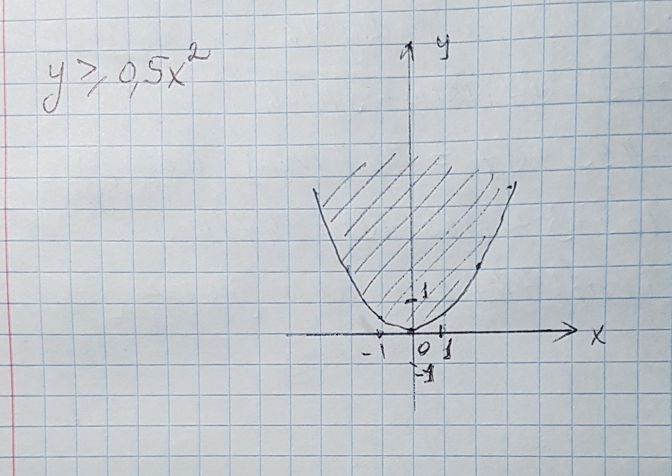 покажите штриховкой на координатной плоскости множество точек, заданных неравенство: у>=0.5х2