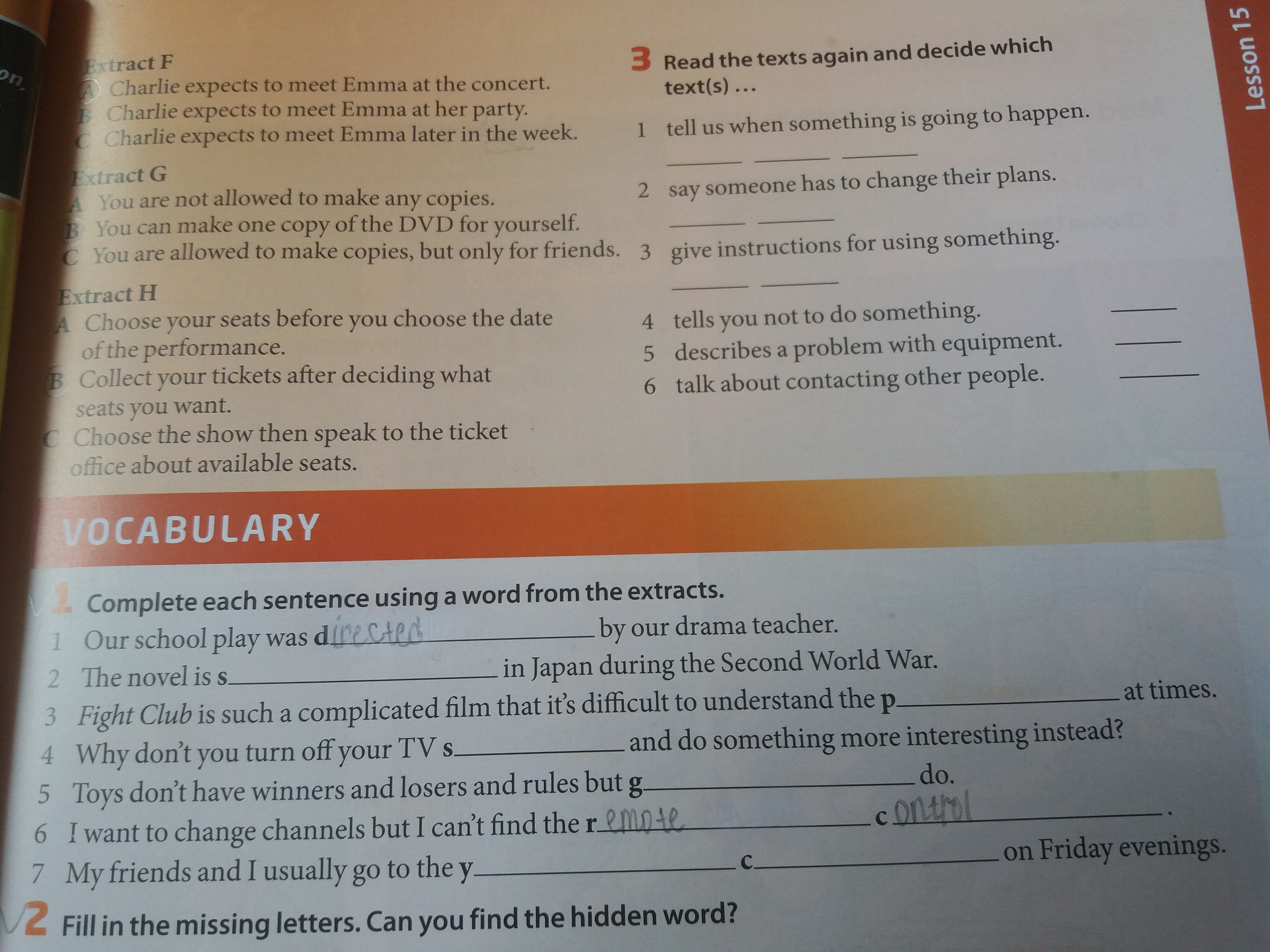 1 directed 2 situated 3 plot 4 set 5 games 6 remote control 7 yacht club