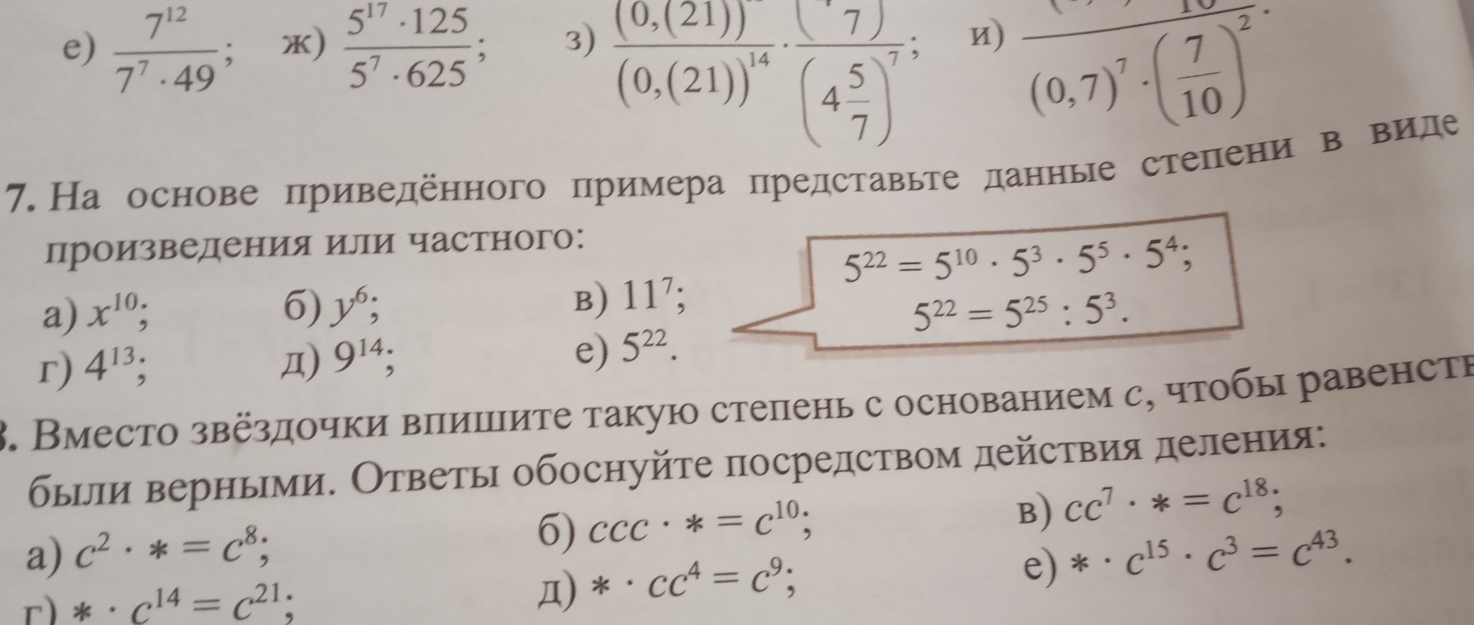 д) 9^14 = 9^2 * 9^7 * 9^5