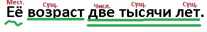 её-чей?доплнение; возраст-что?подлежащее; две тысячи лет