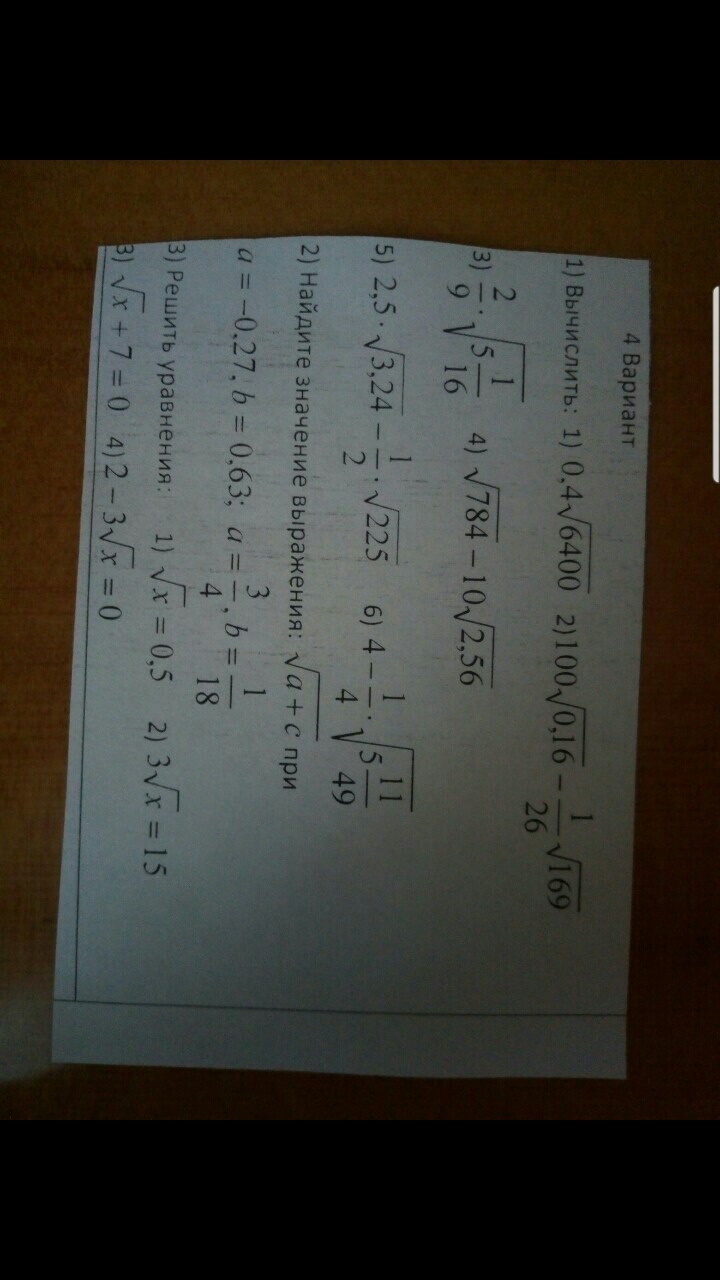 4) √784 - 10√2,56 = 28 - 10×1,6 = 28 - 16 = 6