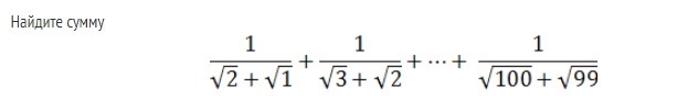 Домножить числитель и знаменатель каждой броби на сумму корней, стоящих в знаменателе. В знаменателях будут стоять единицы. Привести подобные в числителе, останется 10 минус 1 равно 9.