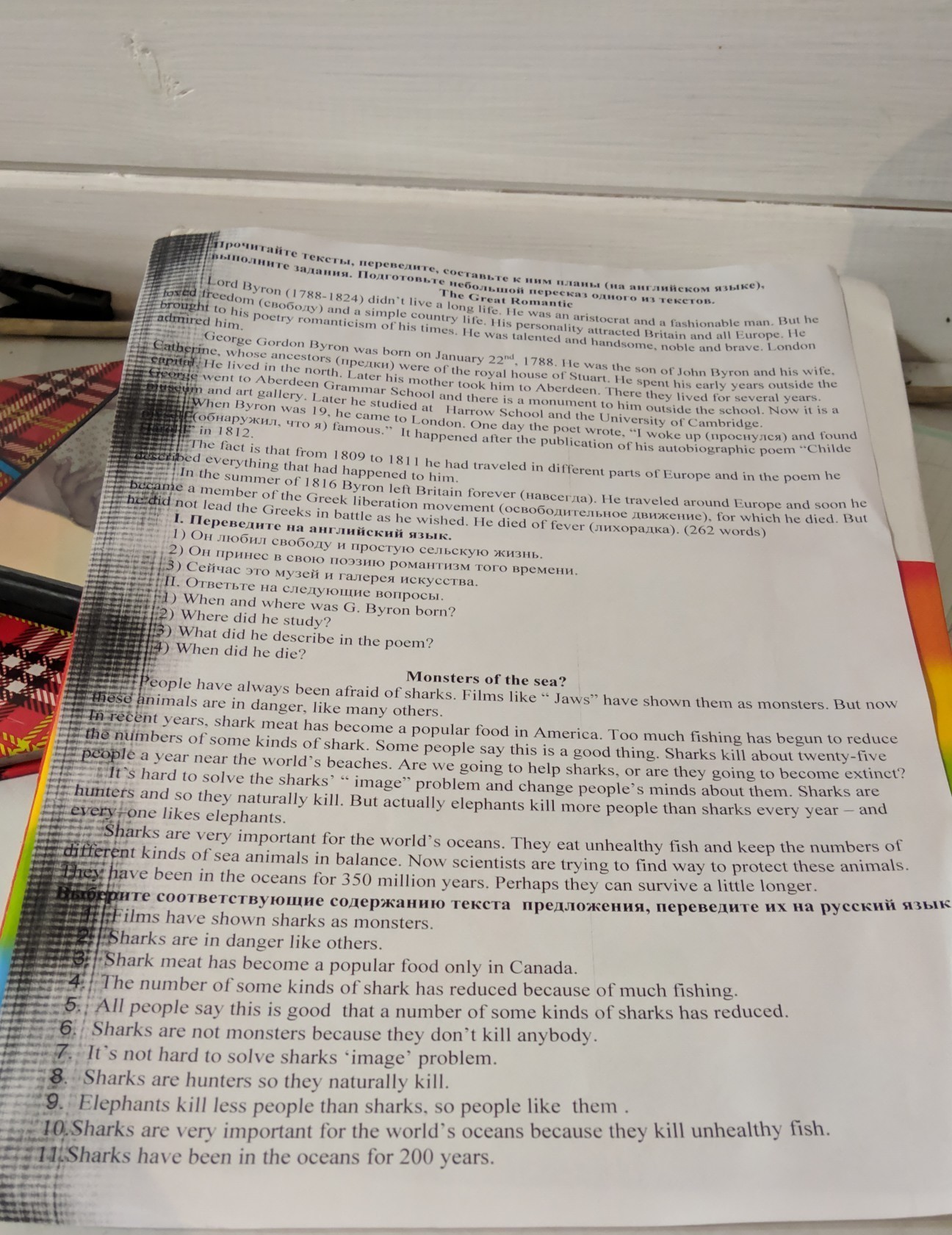 1.1).He loved freedom and simple country life. 2).He brought to his poetry romanticism of his time. 3).Now it is a museum and art gallery 2.1).He was born on January 22nd,1788 in the north, later his mother took him to Aberdeen 2).George went to Aberdeen Grammar School, later he studied at Harrow School and the University of Cambridge. 3).He described in his poem about his travels in different parts of Europe from 1809 to 1811 4).He died in the summer of 1816