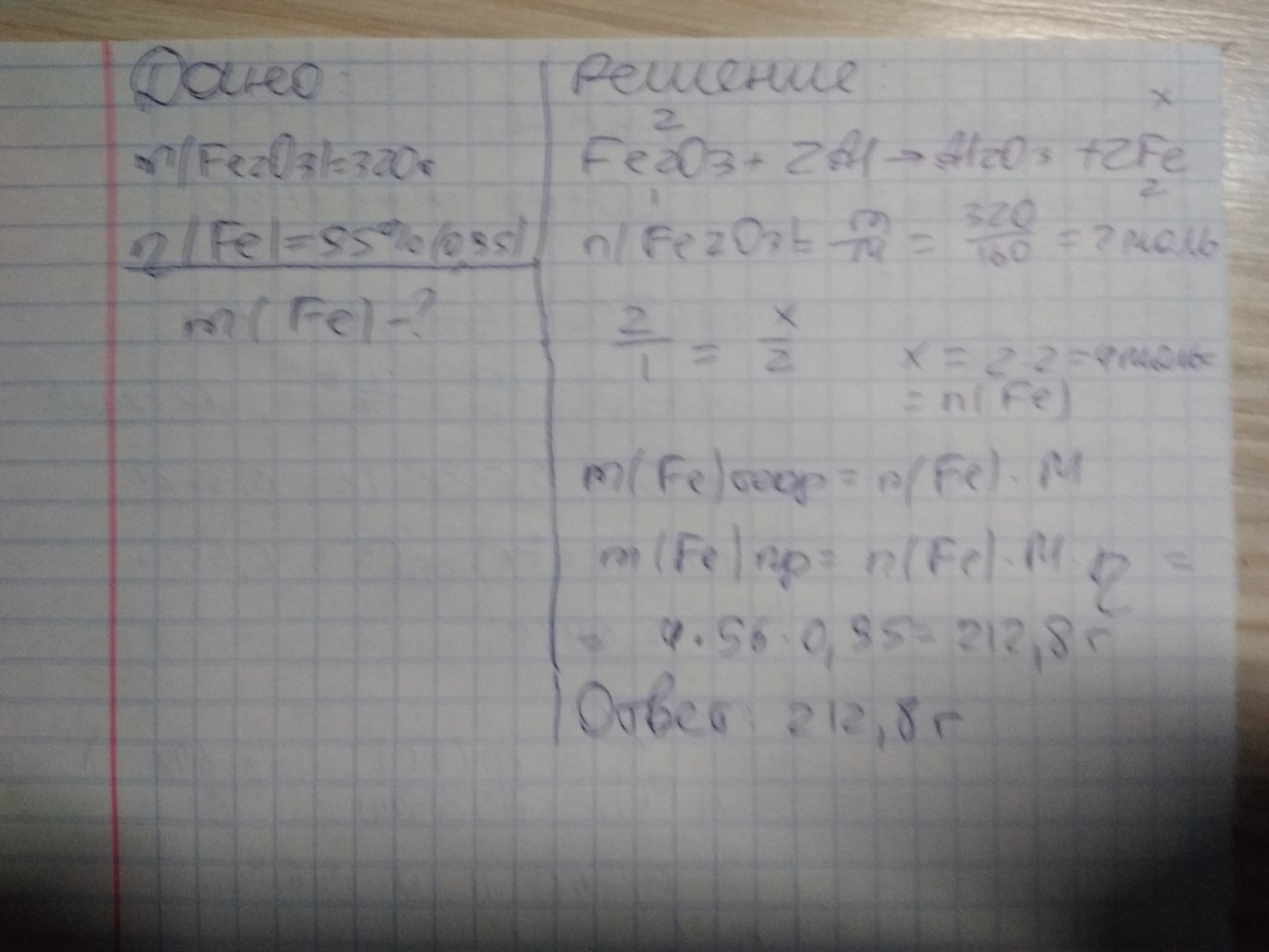 определите массу железа которую можно получить при восстановлении 320 грамм оксида железа (3) алюминием если доля выхода железа составляет 95% от теоретически возможного . ПЖЖЖЖЖ ПОМОГИТЕ