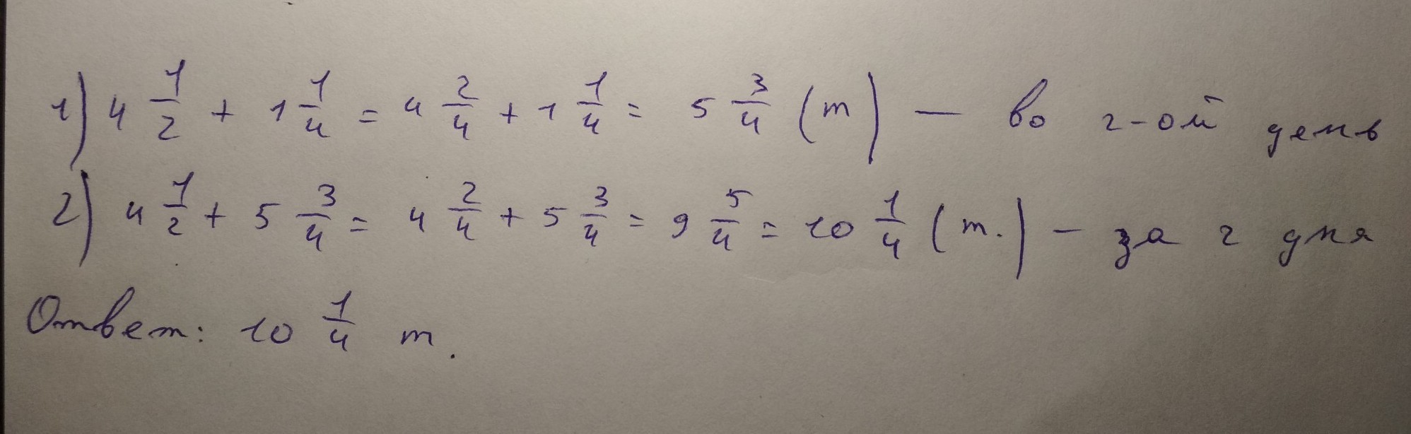 4 1/2+1 1/4=(1+4)+(1/4+1/2)=5 3/4