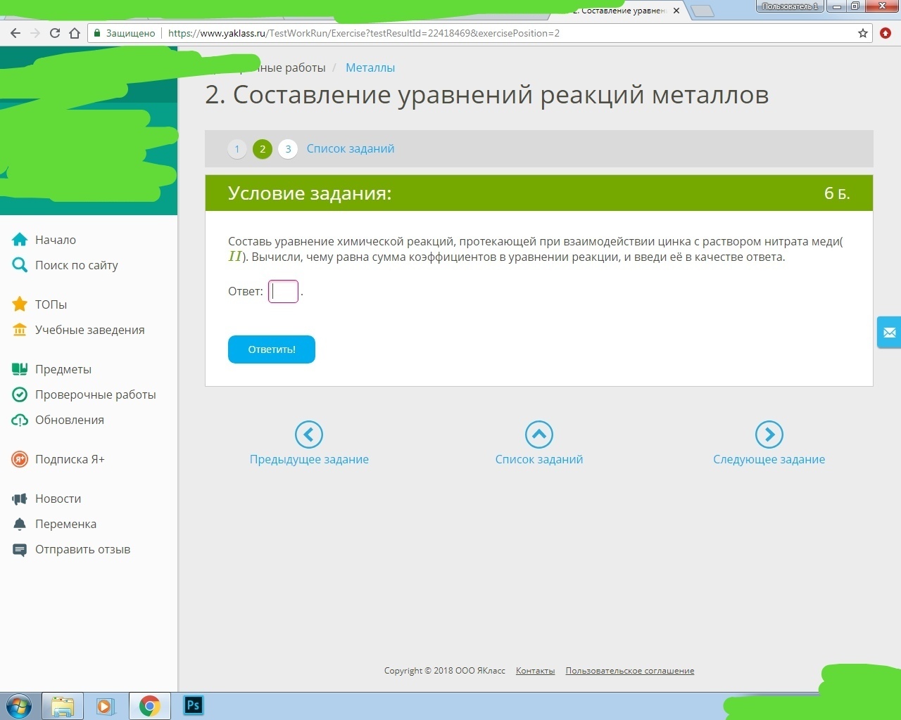 2) Zn + Cu(NO₃)₂ = Zn(NO₃)₂ + Cu