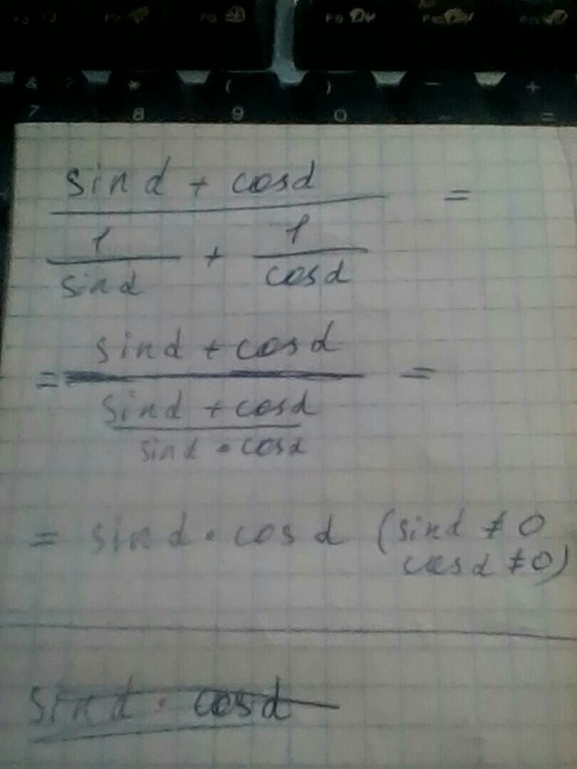 Помогите,пожалуйста,упростить выражение (sin a+cos a):(1/sin a +1/cos a).