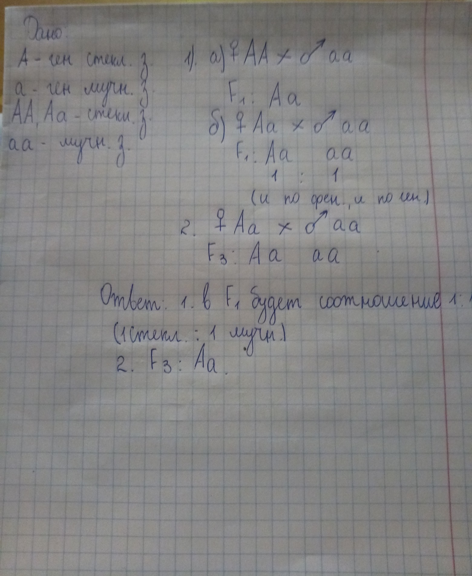 ЗАДАЧА: у пшеницы стекловидные зерна доминирует над мучнистыми. Какие растения и в каком соотношении по генотипу и по фенотипу образуются во 2 поколении, если скрестили растения со стекловидными зернами с растением с мучнистыми зернами?