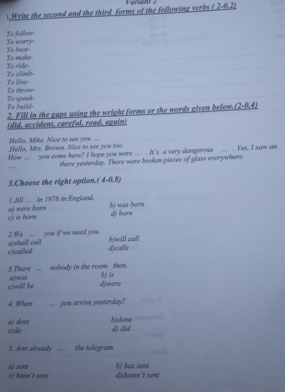 2) 1.again 2. did 3.careful 4.road 5.accident