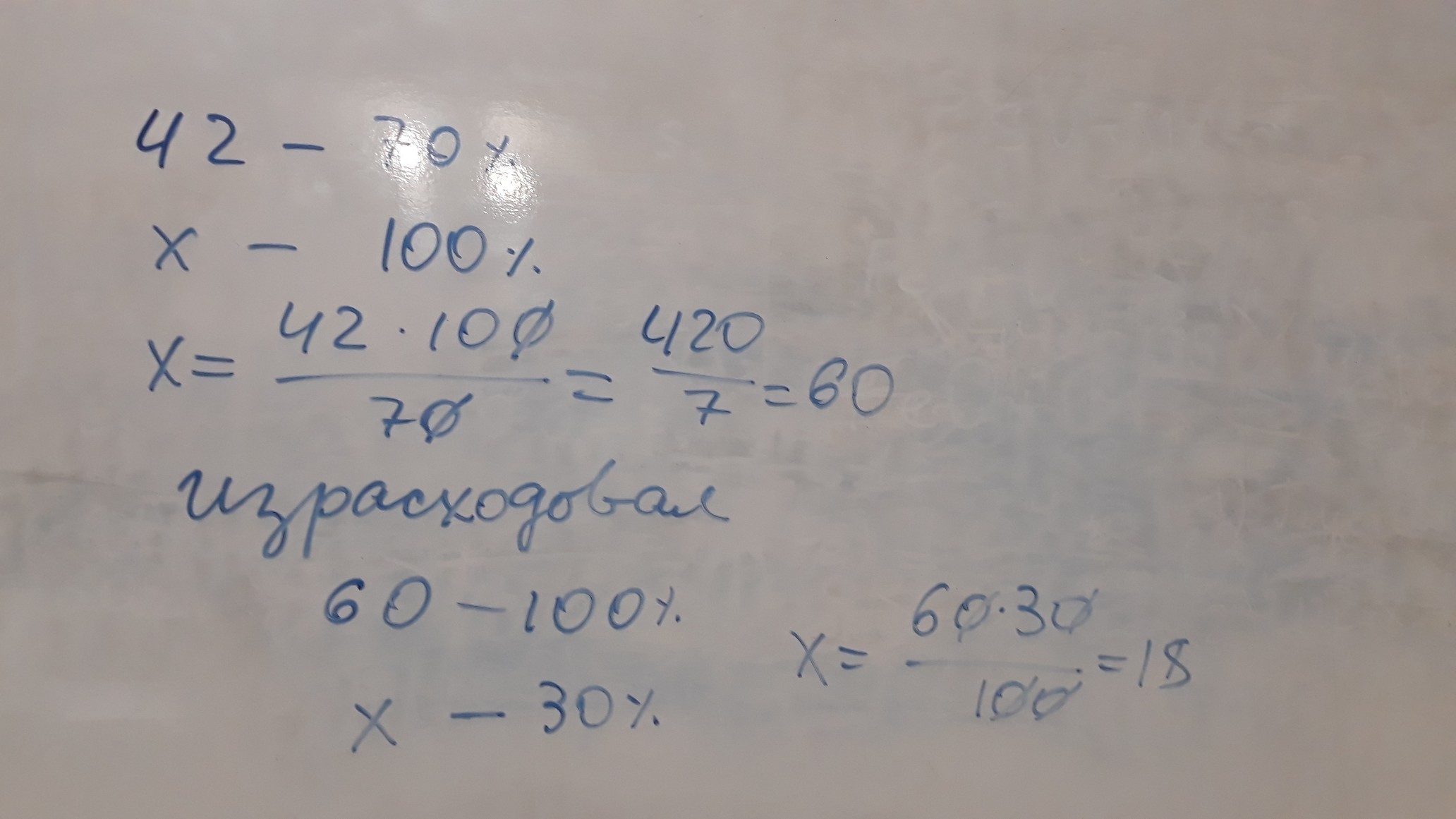 Когда израсходовал 30 процентов осталось 70 процентов.