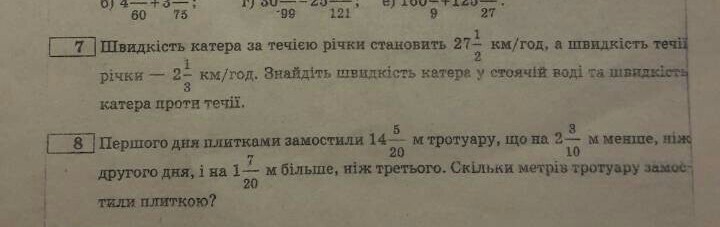 7. 27 1/2-2 1/3 = 27 3/6-2 2/6=25 1/6- скорость катера
