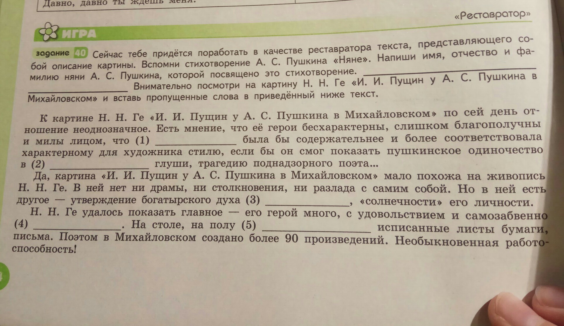 1. картина; 2. деревенской; 3. Пушкина; 4. работает; 5. разбросаны