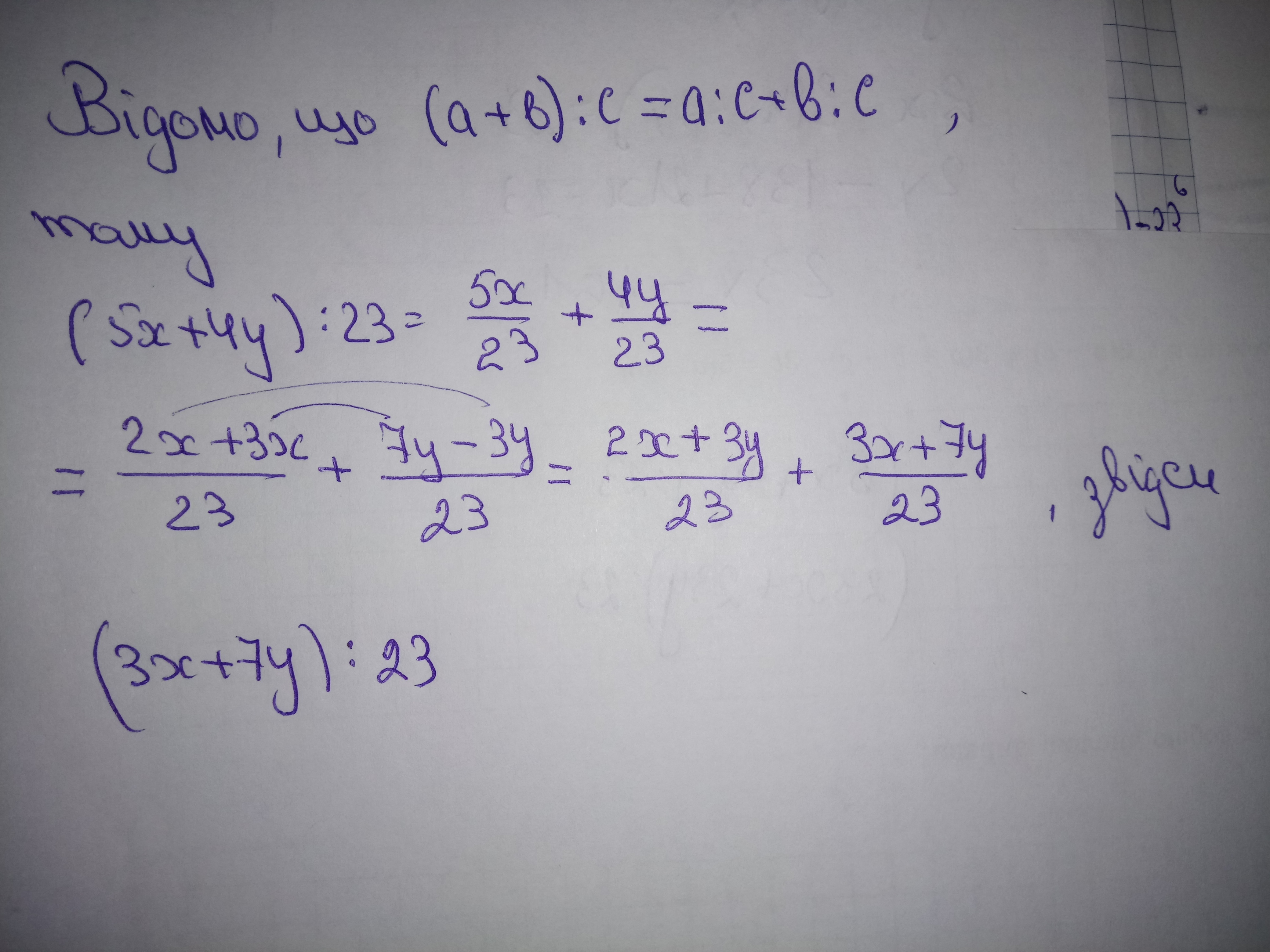 Відомо, що 5x+4y ділиться на 23 доведіть, що 3x+7y теж ділиться на 23