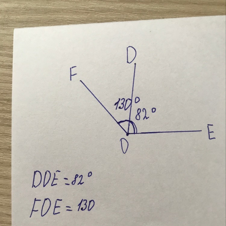 помогите сделать задание на рисунке 53 =DOE = 82° а угол FOD - развернутый. Вычислите величину угла FOE. Даю 24 балла