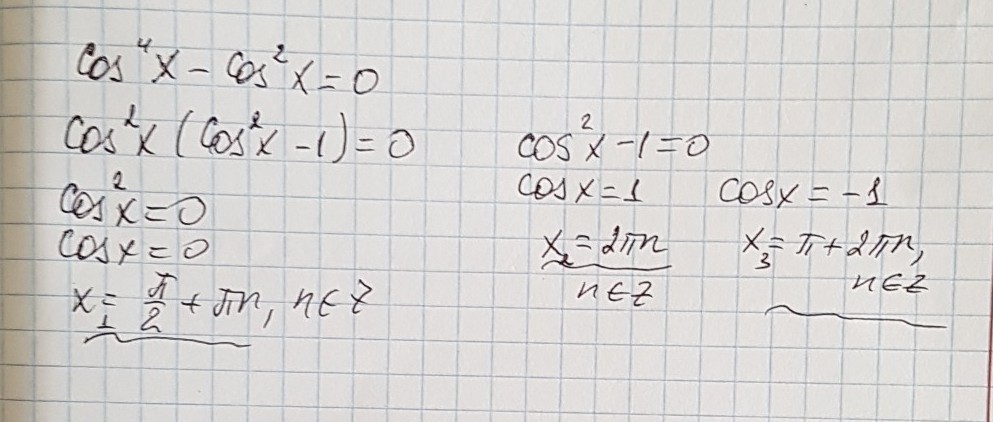 cos^4x-cos^2x=0 cрочно пожалуйста нужно