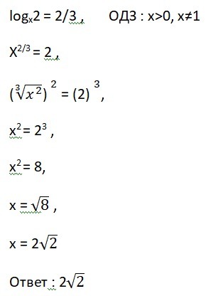 logx2 = 2/3 , ОДЗ : x>0, x≠1