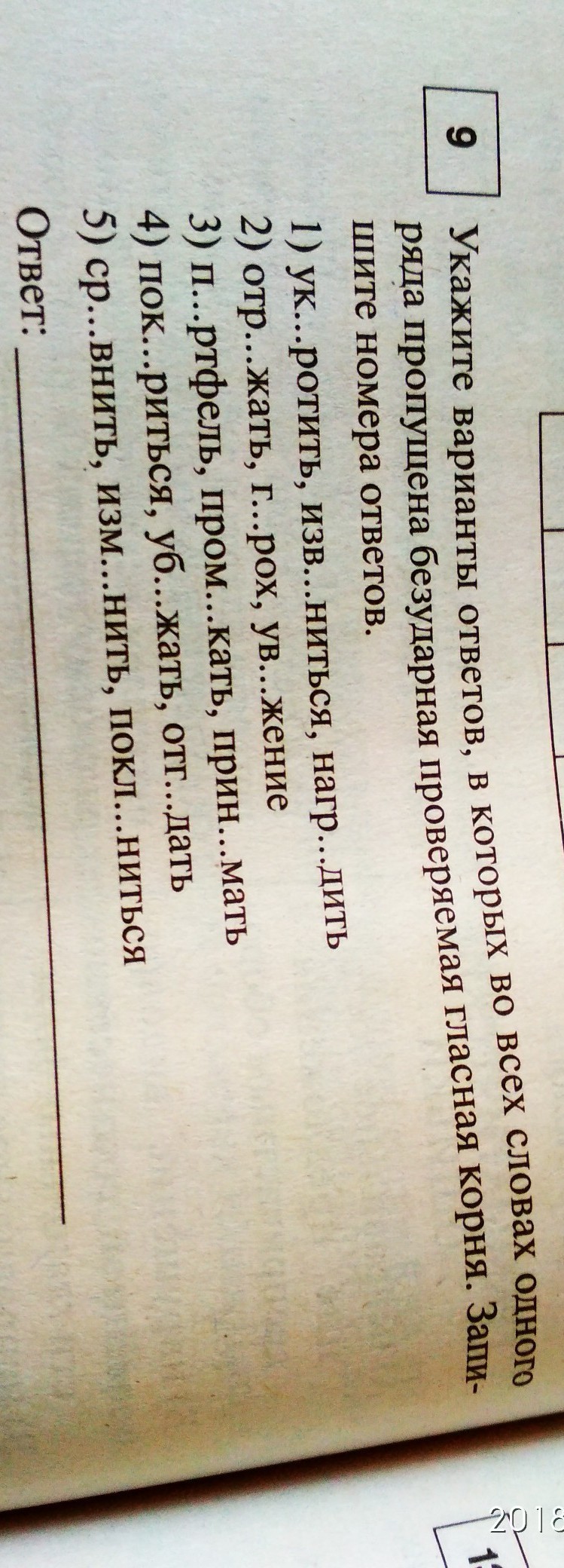 Ответ: 1) укОротить (ко'роток), извИниться (прови'нность), нагрАдить (награ'да); 4) покОриться (поко'рность), убЕжать (бег), отгАдать (отга'дка); 5) срАвнить (ра'вный), измЕнить (изме'на), поклОниться (покло'н).