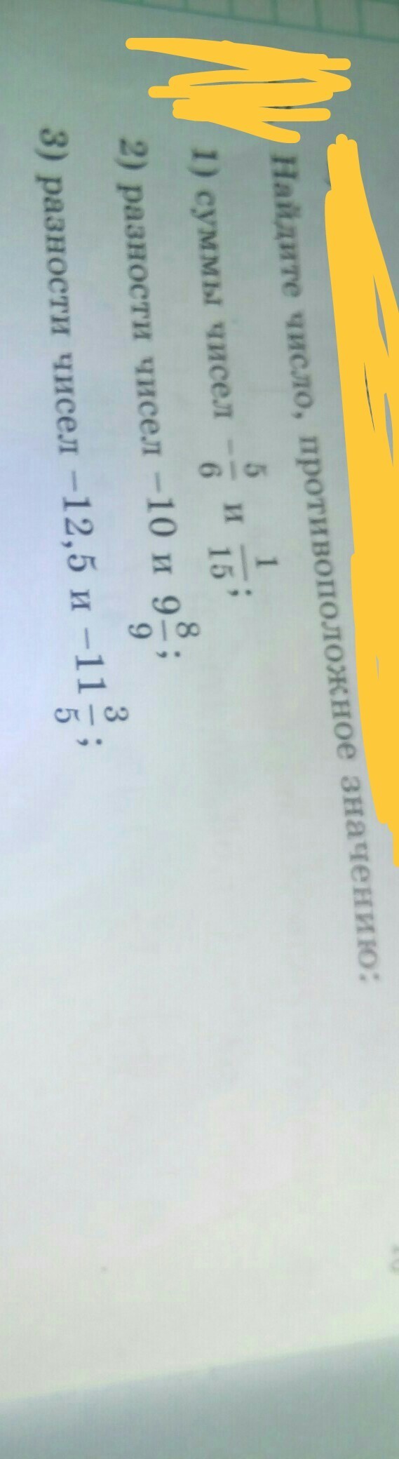 -5/6+1/15=-25/30+2/30=-23/30 противоположное 23/30