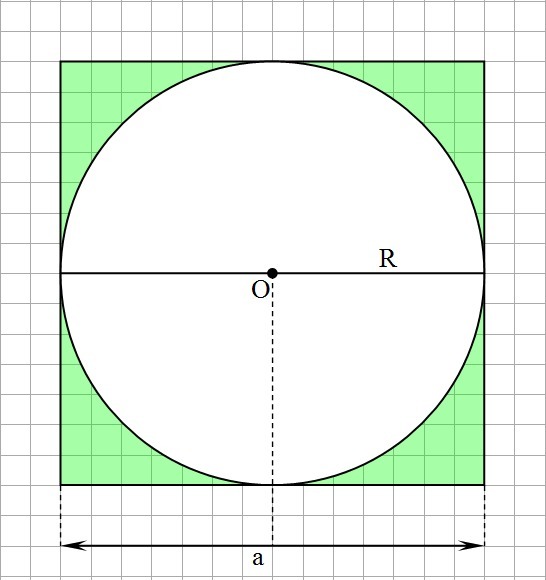 Айнур из листа бумаги в форме квадрата со стороной 8 см, вырезала круг. Чему приблизительно равен радиус круга?