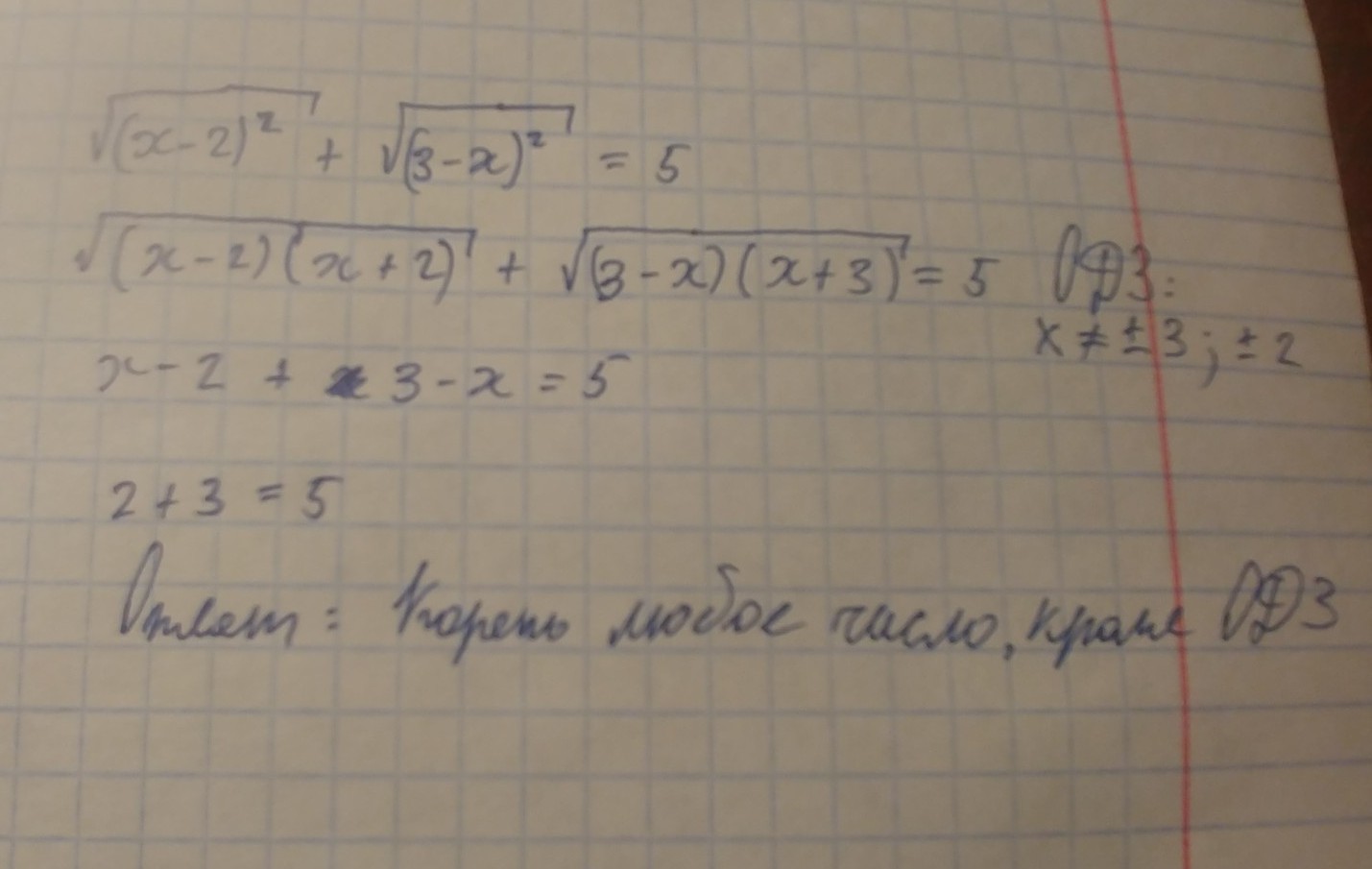 (x-2)^2 и (3-x)^2 это не разность квадратов, поэтому нельзя разложить как (x-2)(x+2) и (3-x)(3+x).