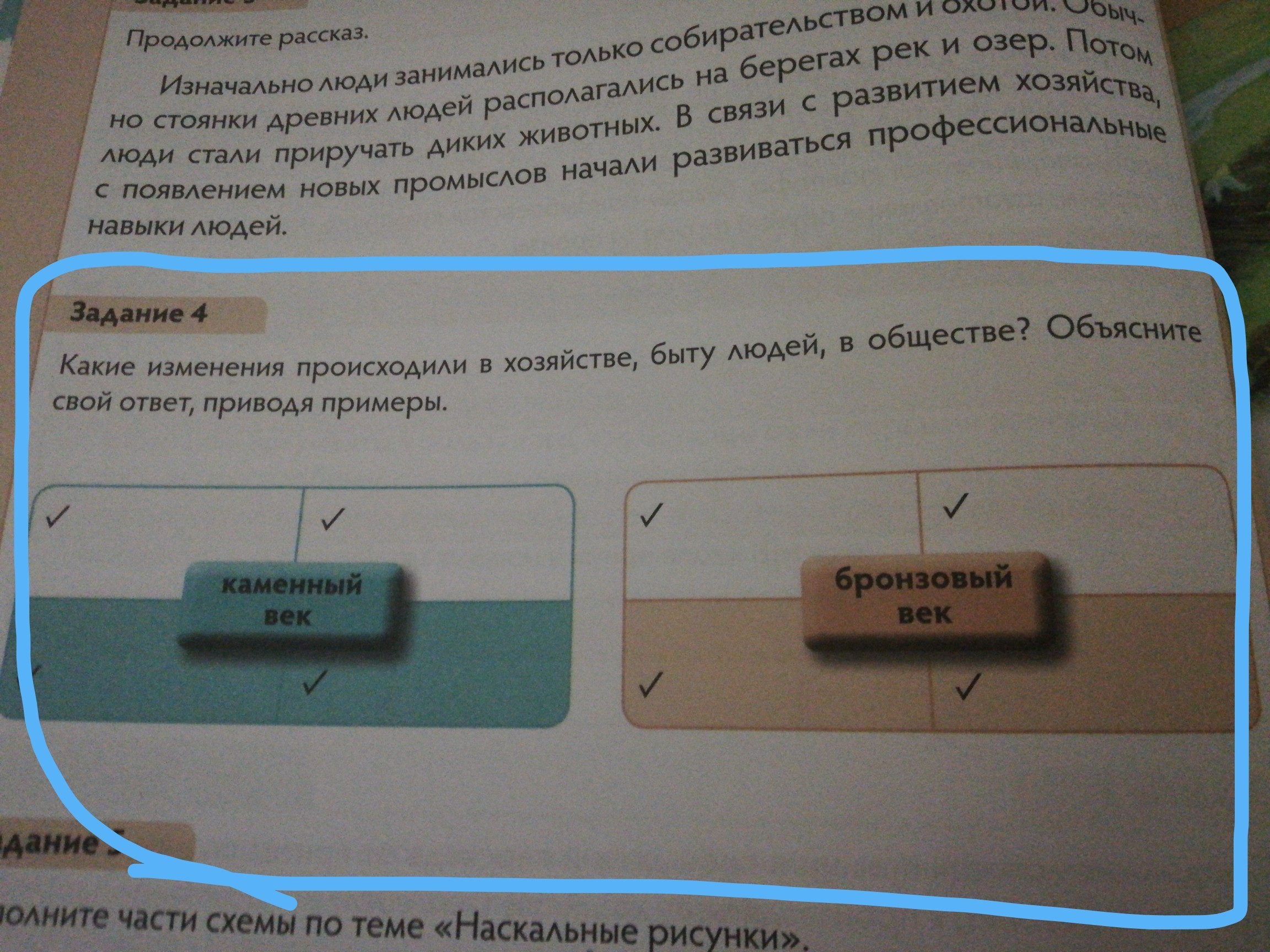 В каменном веке люди изготавливали орудия труда и оружия из камня ,а в бронзовом веку из бронзы.В бронзовом веке стали добывать бронзу и плавить её.В каменном веки использовались примитивные орудия ,а в бронзовом веке орудия были более крепки и более сложнее в изготовлении.