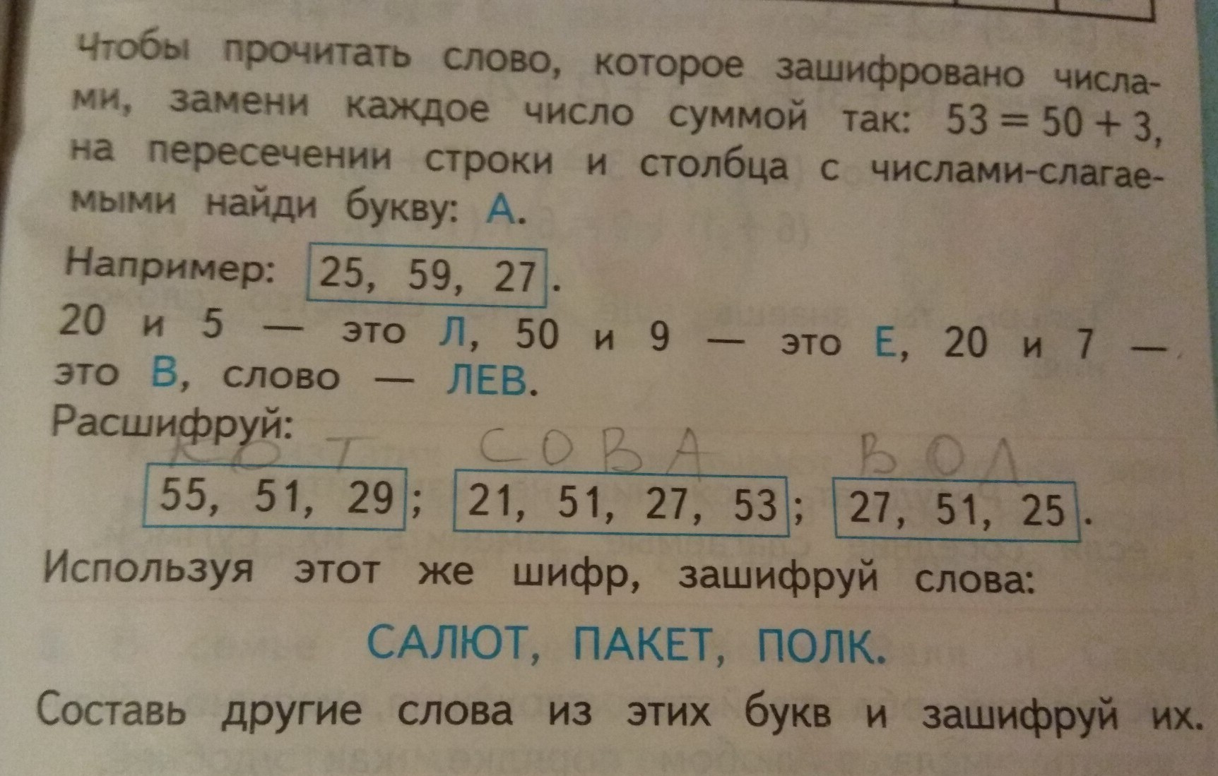 41 - П, 51 - О, 25 - Л, 55 - К.