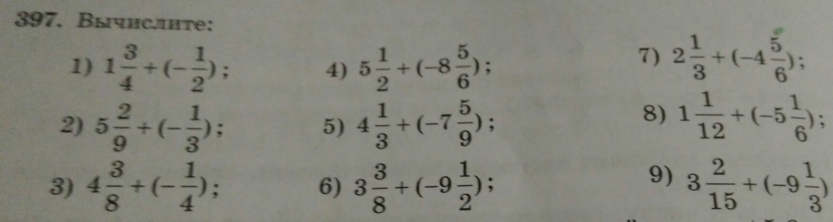 Ответы 1)1 1/4 2)4 8/9 3)4 1/8 4)-3 2/6 5)-3 2/9 6)-6 1/8 7)-2 3/6 8)-4 1/12 9)-6 3/15