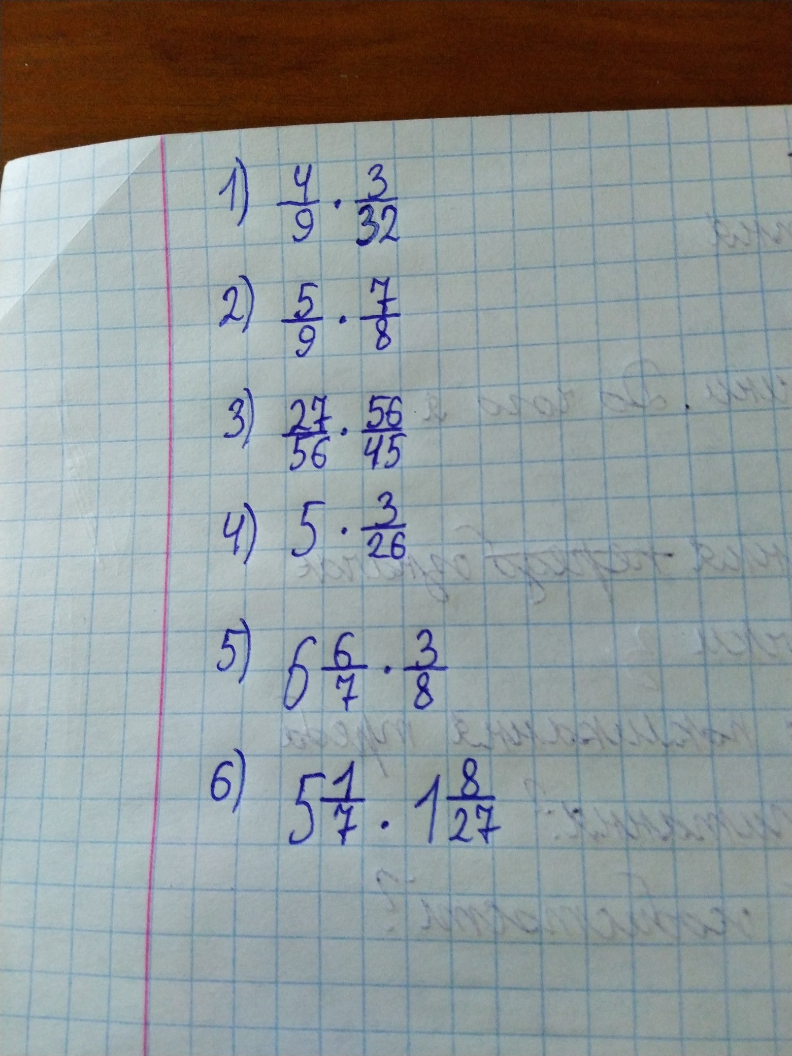 6) 36/7*35/27 = 4*5/3 = 20/3 = 6*2/3