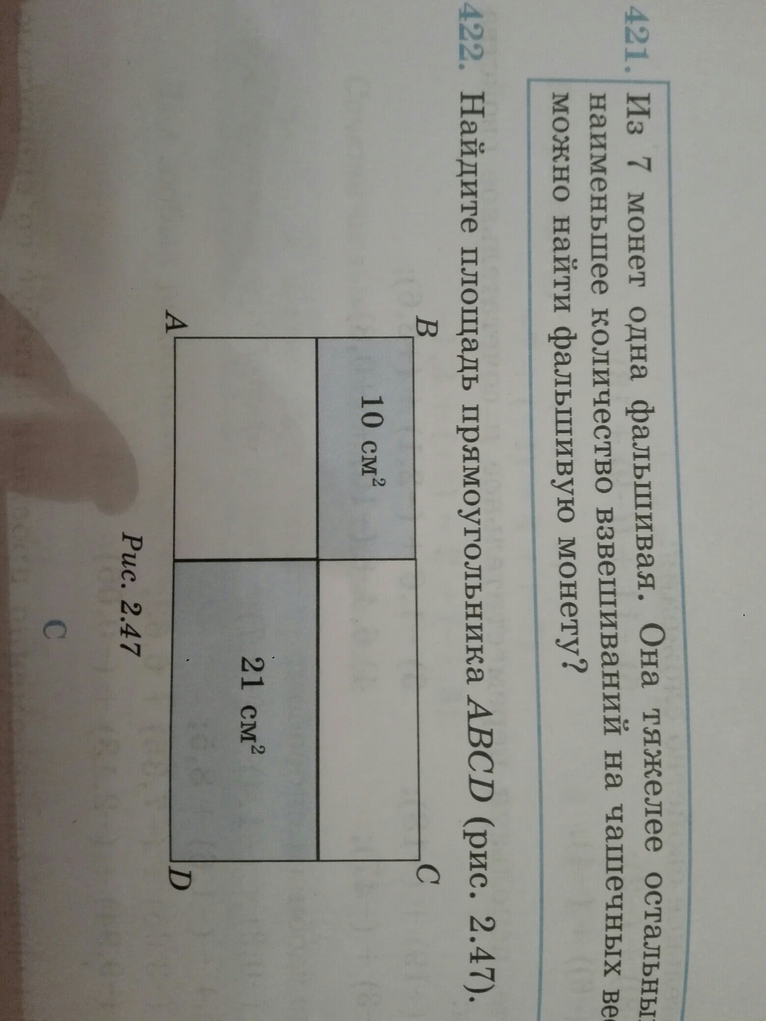 Если разложить числа 10= 2*5 и 21=3*7 , тогда стороны прямоугольника ABCD будут равны 5 и 12, и площадь будет равна 60