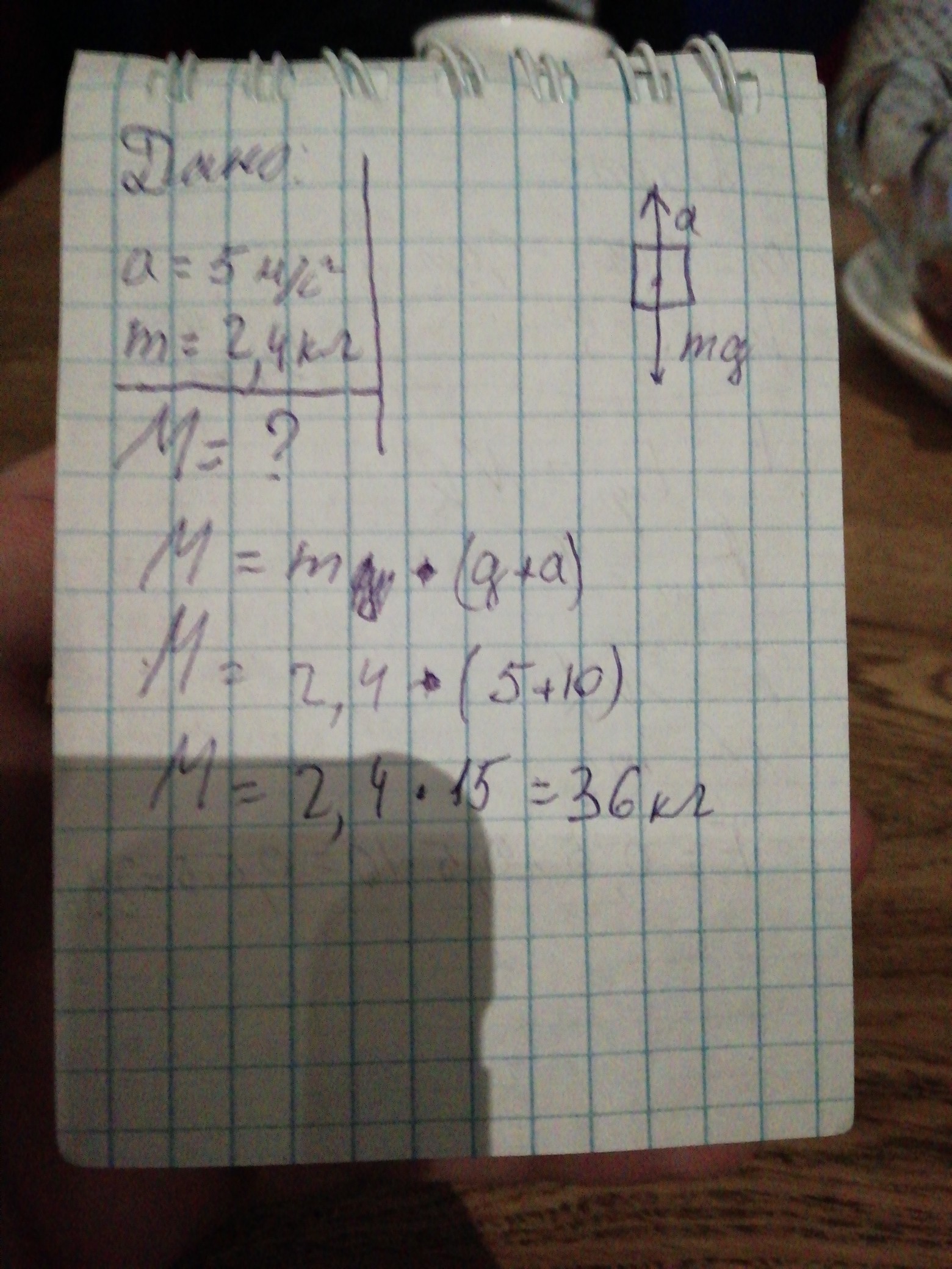 Каким был вес собаки Лайки, во время подъема ракеты с ускорением 5 м/с в квадрате. Если ее масса 2,4 кг. Решите пожалуйста!)