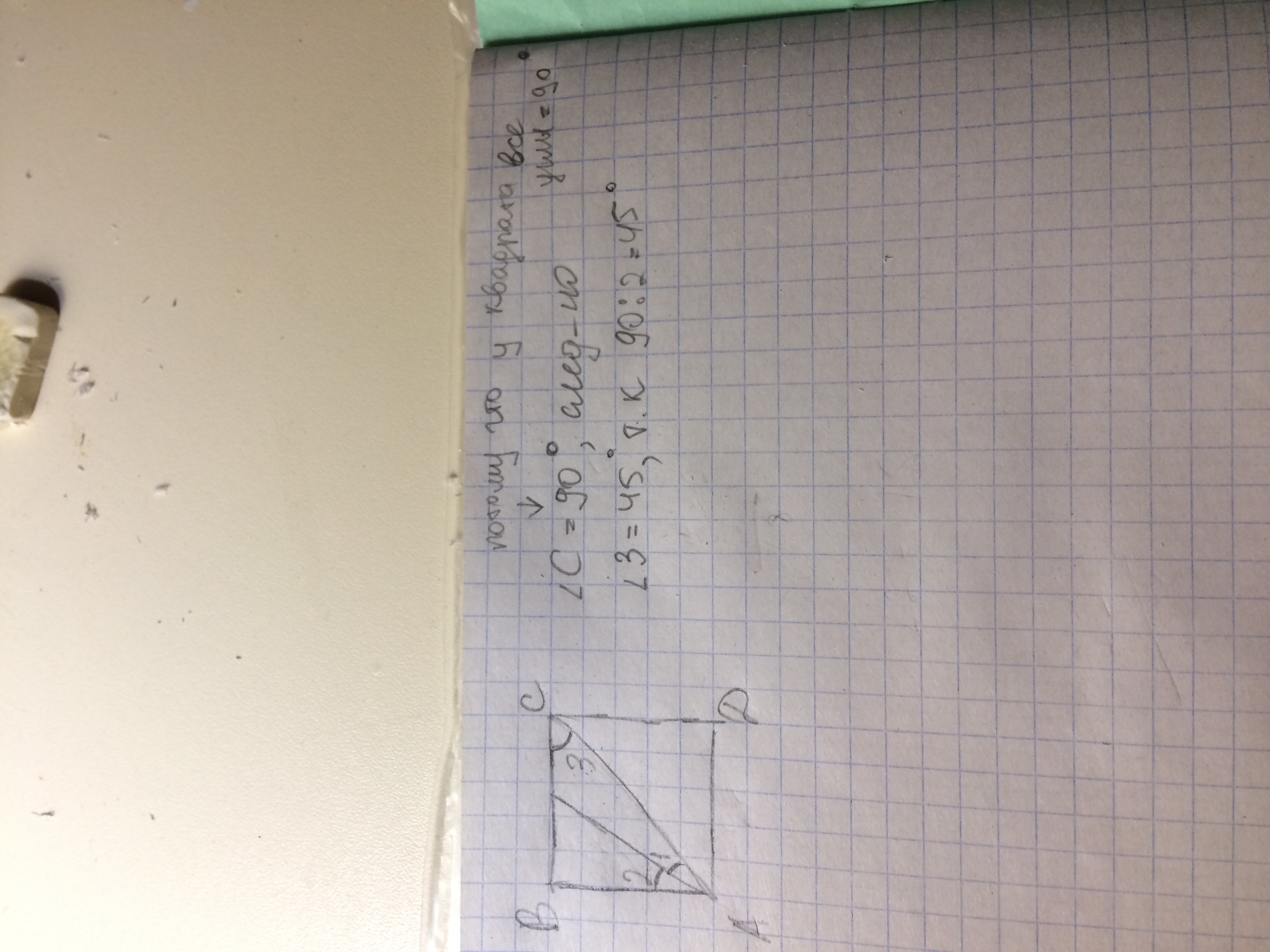 90° : 2 = 45°