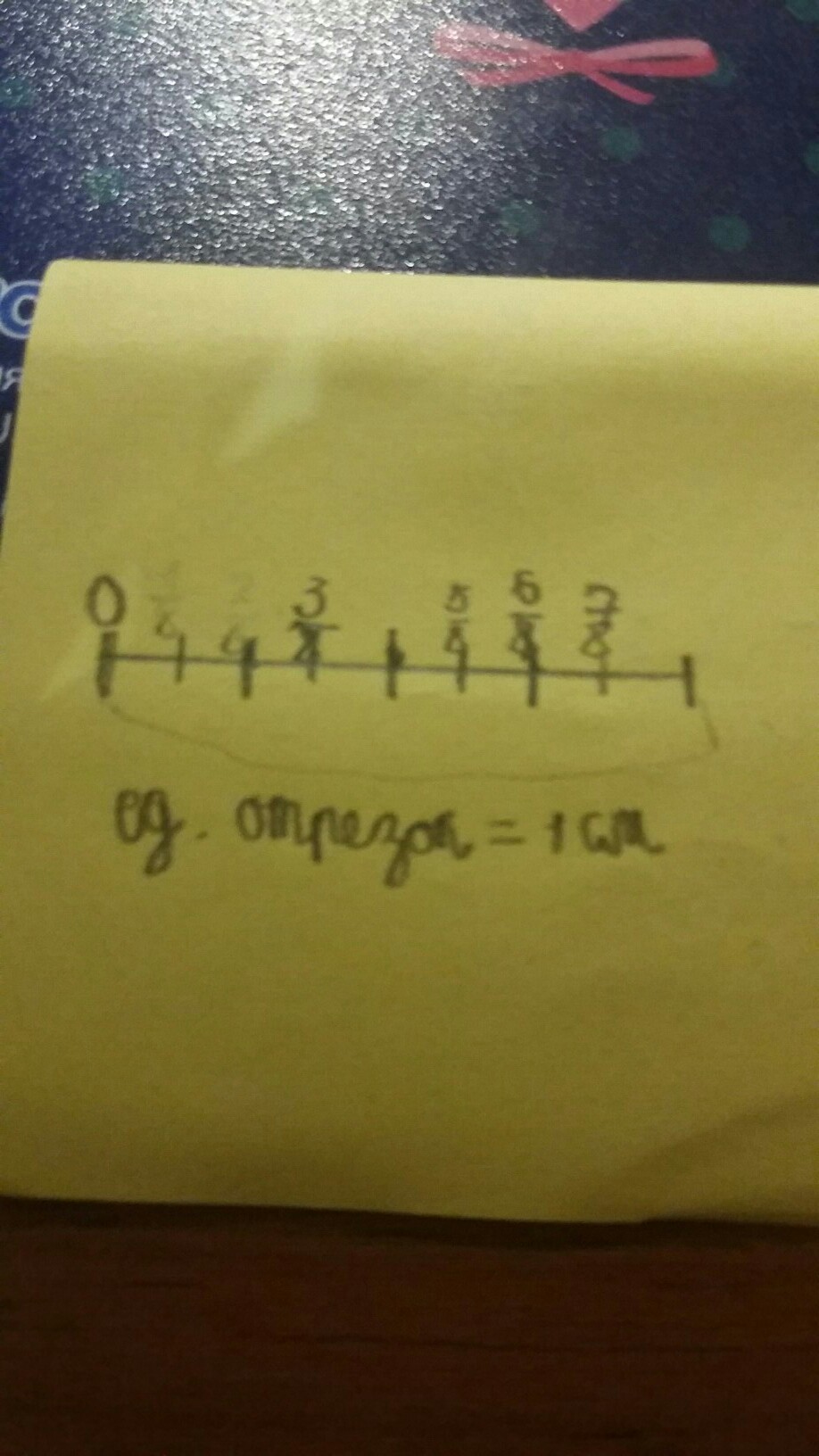 Изобразить на числовом луче точки, соответствующие обыкновенным дробям 3/8, 5/8, 6/8, 7/8, если единичный отрезок равен 4 см.