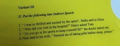 4 Nick asked his wife to remind him of taking pills before sleep.
