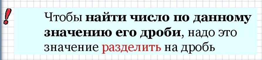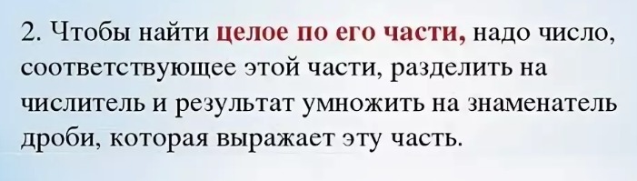 Для 5 класса: чтобы найти целое, надо значение дроби разделить на числитель части и умножить на знаменатель