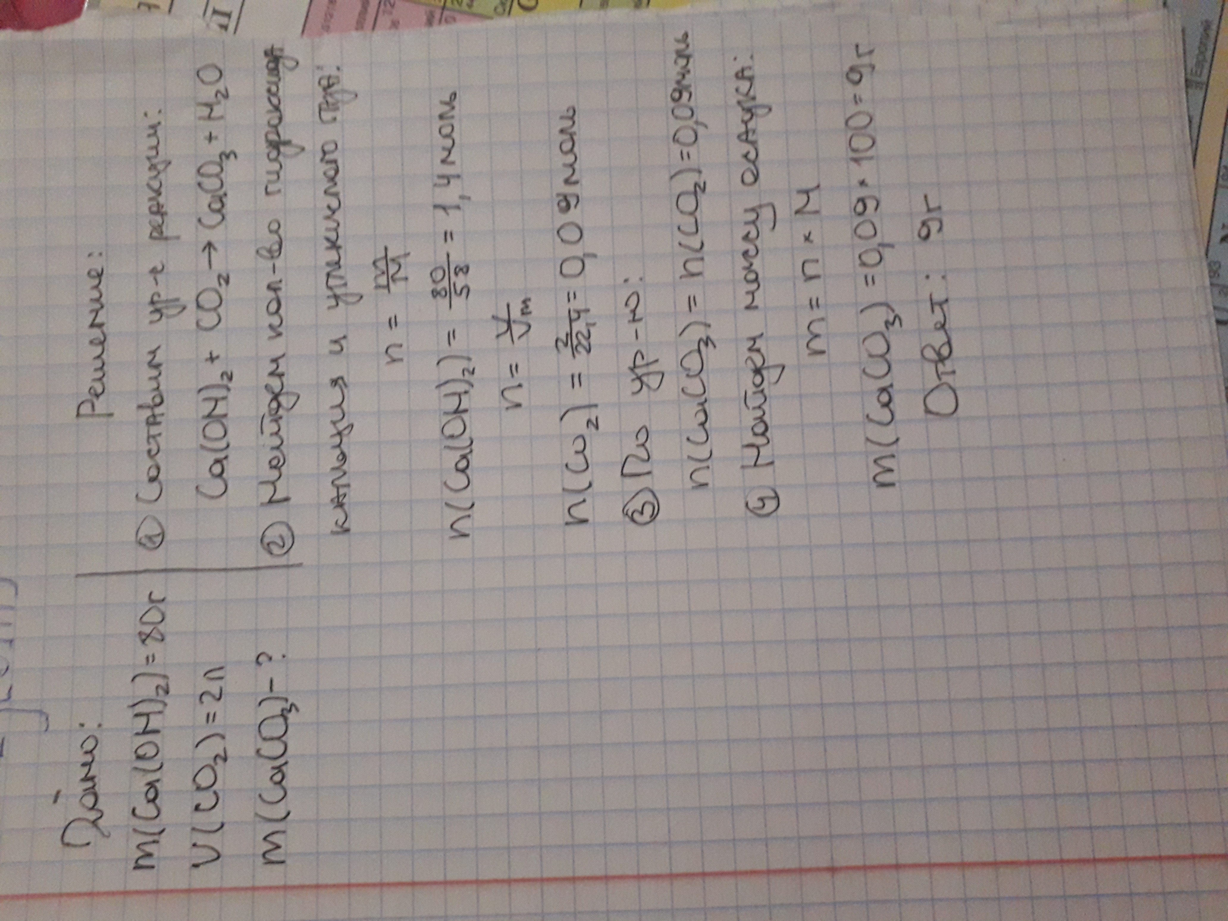 При взаимодействии 2 л углекислого газа с 80 г гидроксида кальция выпал осадок,Вычислите его массу