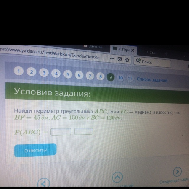 по условию AC=150, BC=120, AB=90 (т.к. CF медиана и соответственно AF=FB=1/2 AB