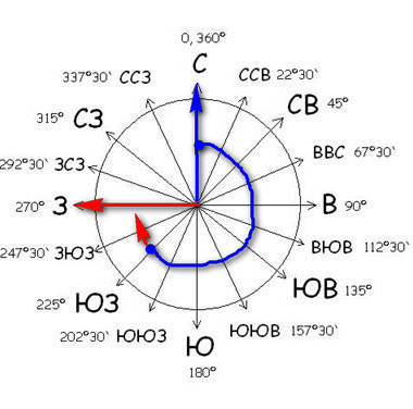 Значит для возвращения нужно идти строго на юго-восток, азимут 135 градусов