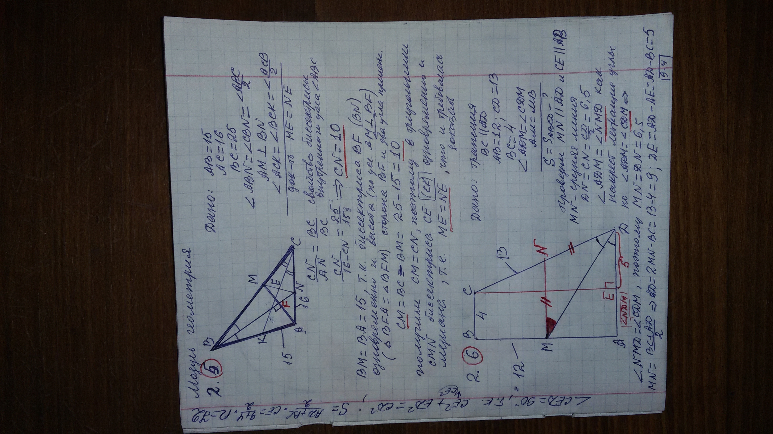NM=ND=BC/2=13/2= 6,5. NM =(AD+BC)/2⇒AD=2MN-BC=9