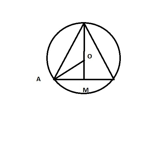Самое простое решение по формуле a=R√3⇒R=a/√3=6 cм. Можно решить иначе. Из треугольника АОМ находим гипотенузу АО=АМ/cos30°= (3√3) :(√3/2)= 6 cм.