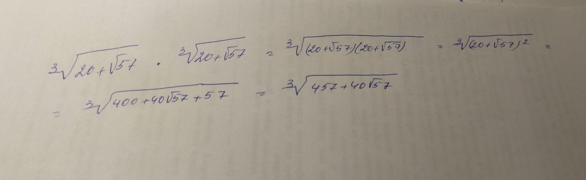 Корень в 3 степени под корнем 20 плюс корень из 57 умножить на корень в 3 степени под корнем 20 плюс корень из 57