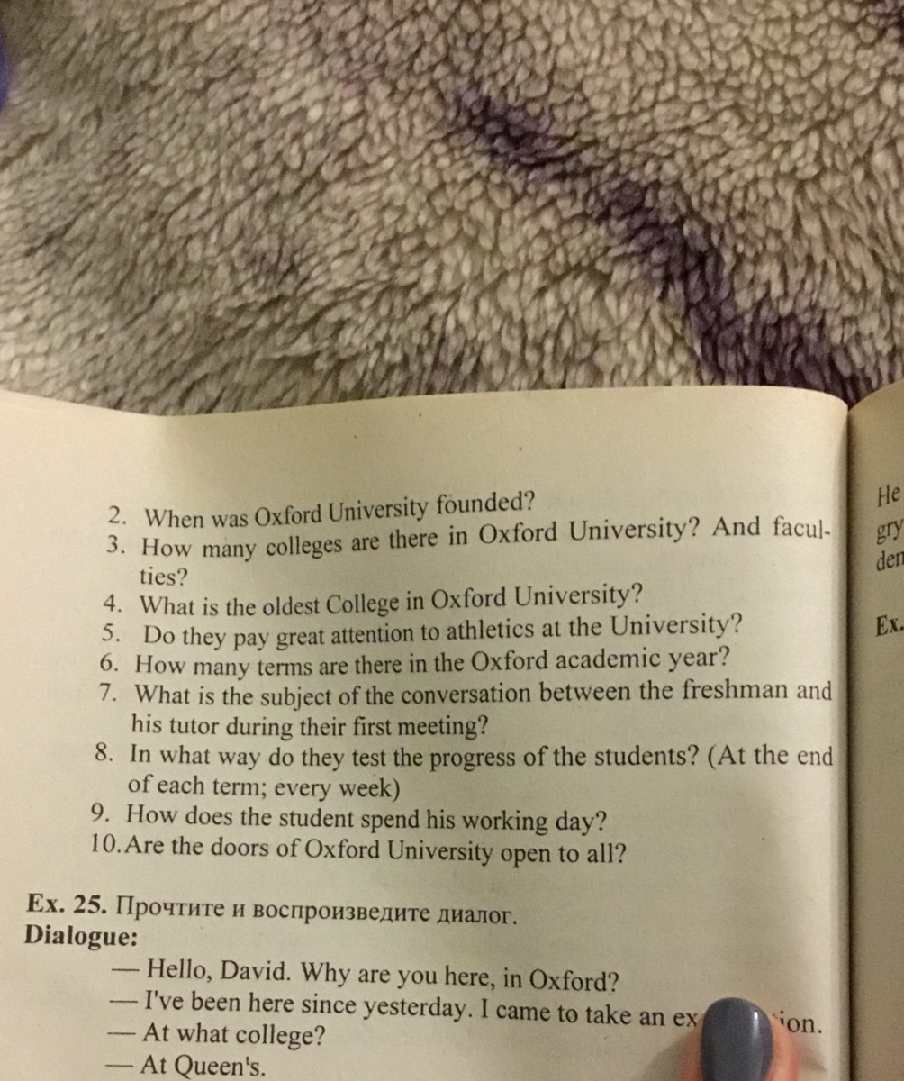 Помогите сделать упражнение с верху , нужно ответить на вопросы по этому тексту, пожалуйста помогите срочно нужно !!!