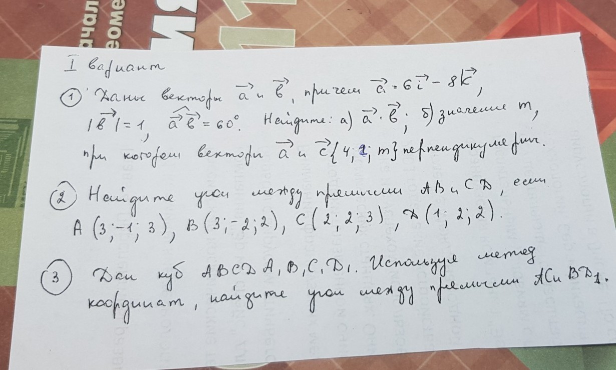 В(0; 0; 0), Д1(1; 1; 1), ВД1(1; 1; 1).