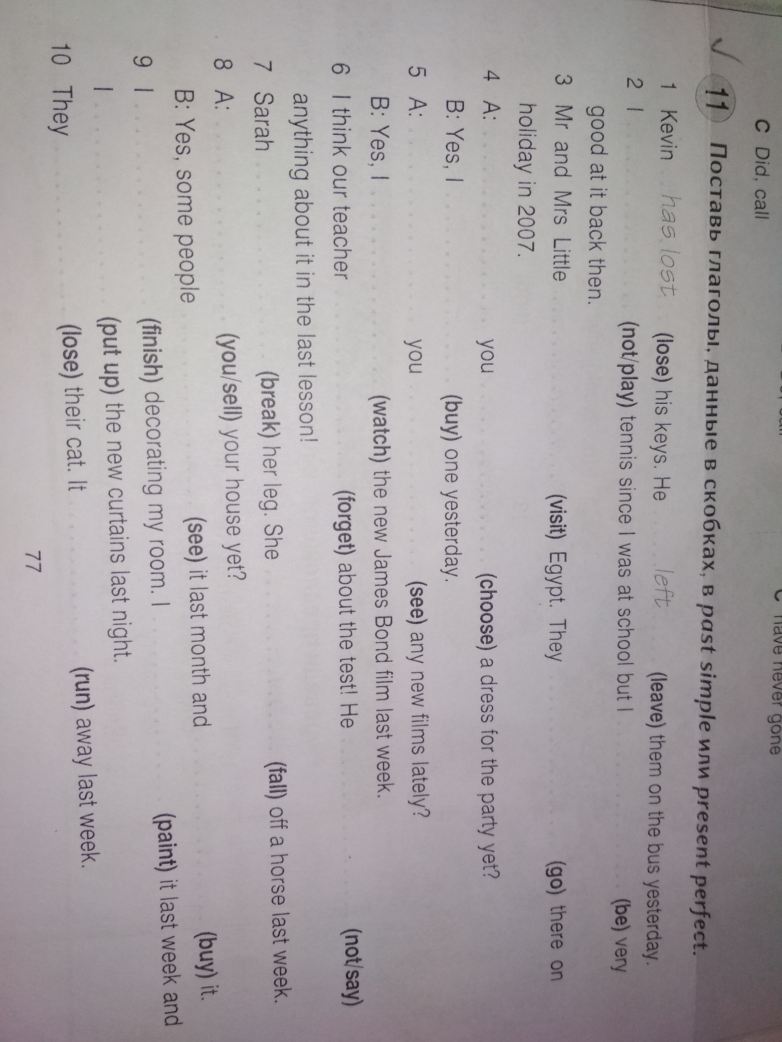 6 I think our teacher has forgotten about the test. He didn't say anything about it in the last lesson.