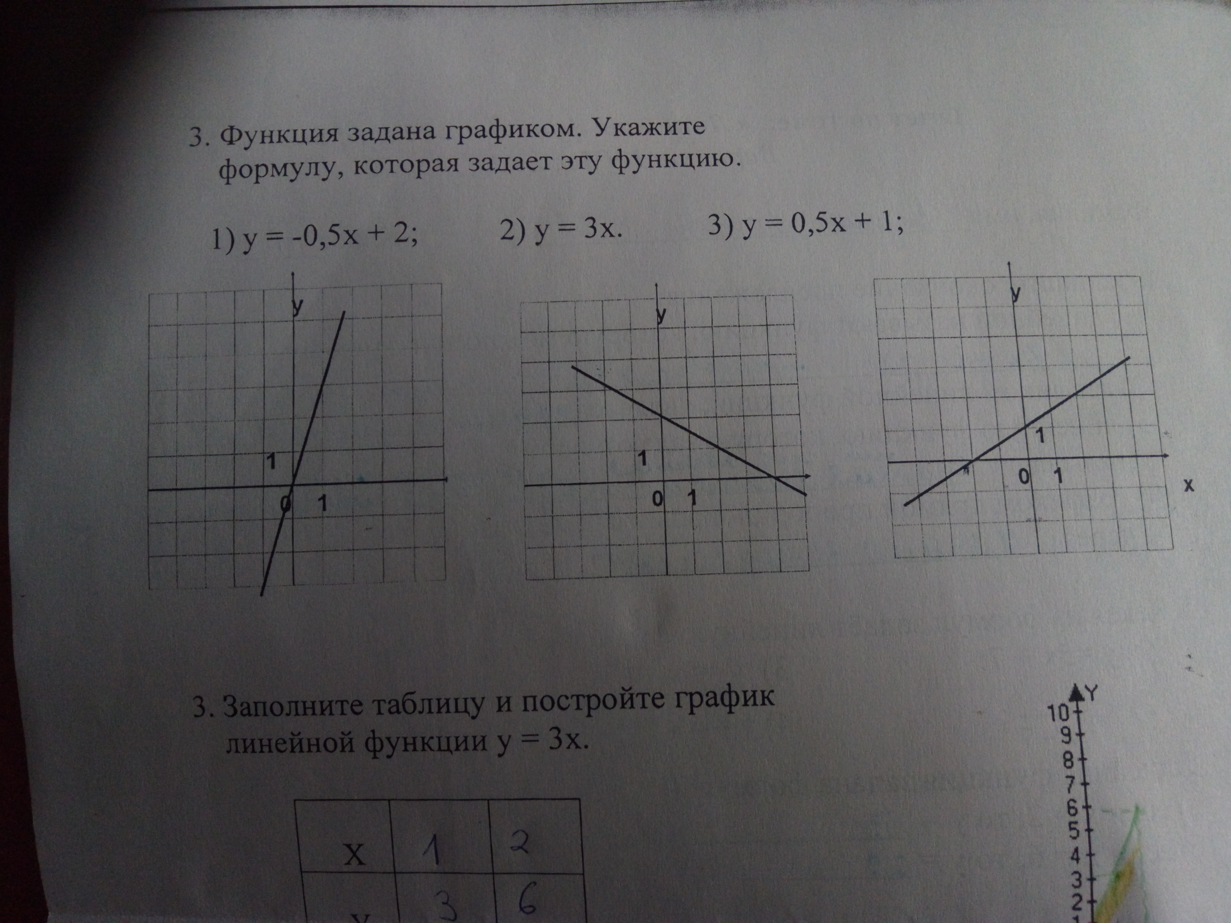 2 - первый график. Так как проходит через центр координат 0. У=3*х. Если вместо Х ставим 0, то и у ноль.